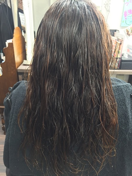 濡れていますが、カラーなどによってダメージした髪の毛は乾燥し髪の表面がボロボロです・・・